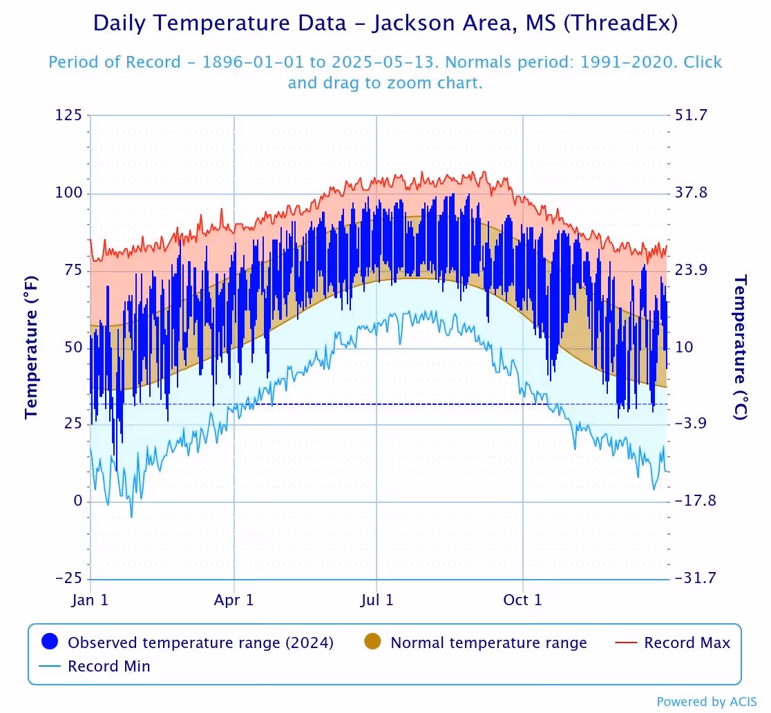 According to the CDC, the Jackson area, and the state of Mississippi in general, has Average Daily Dose of Ultraviolet (UV) light on the higher end of their scale vs. other states in the continental United States.